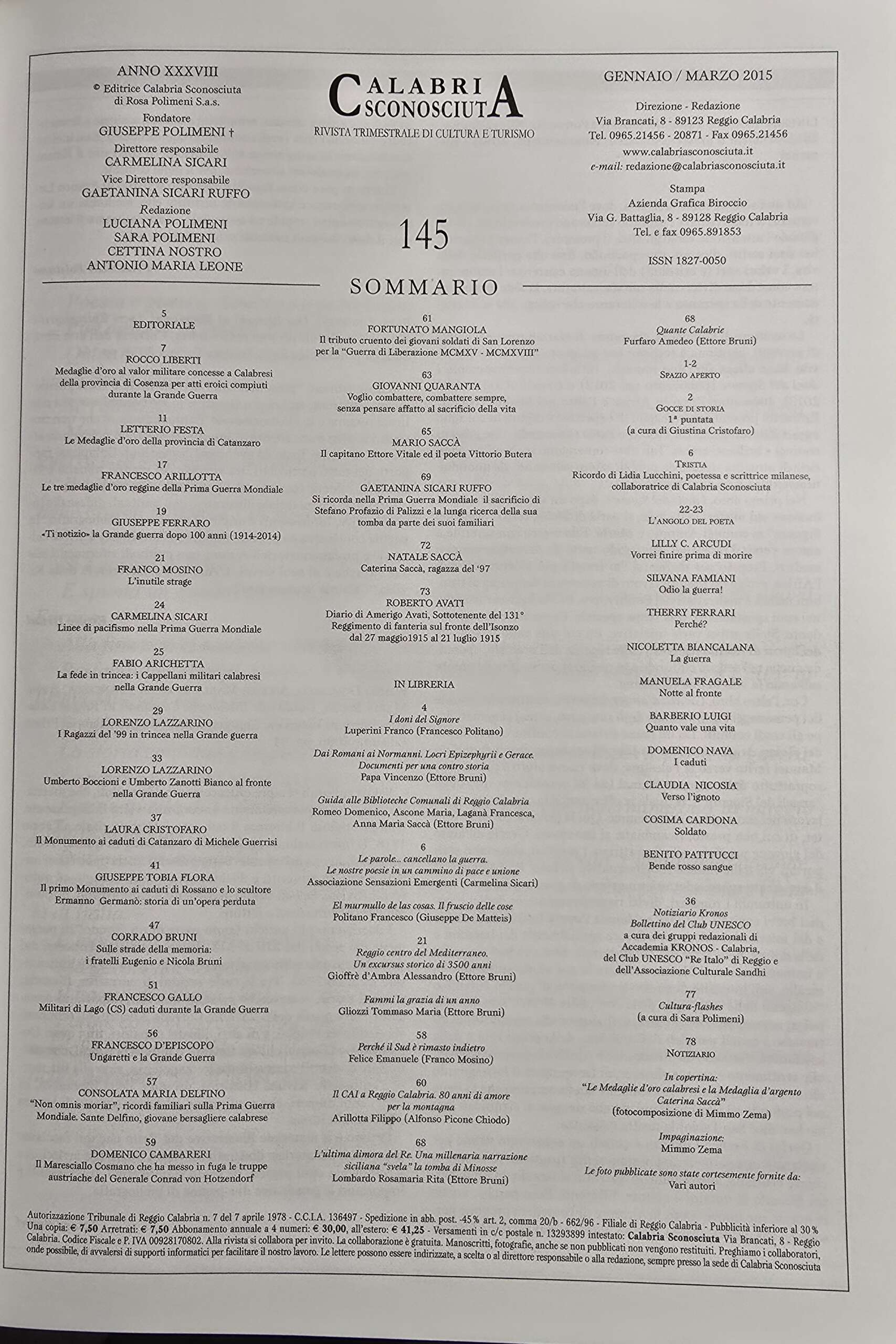 Nel numero 42 (decimo anniversario della sua prima pubblicazione) e nel numero 100 (venticinquesimo anno) si trovano gli indici, ovvero un’utile guida che riporta gli articoli per autore e per numero. Il numero 165-168 (gennaio-dicembre 2020) segna la fine della pubblicazione.