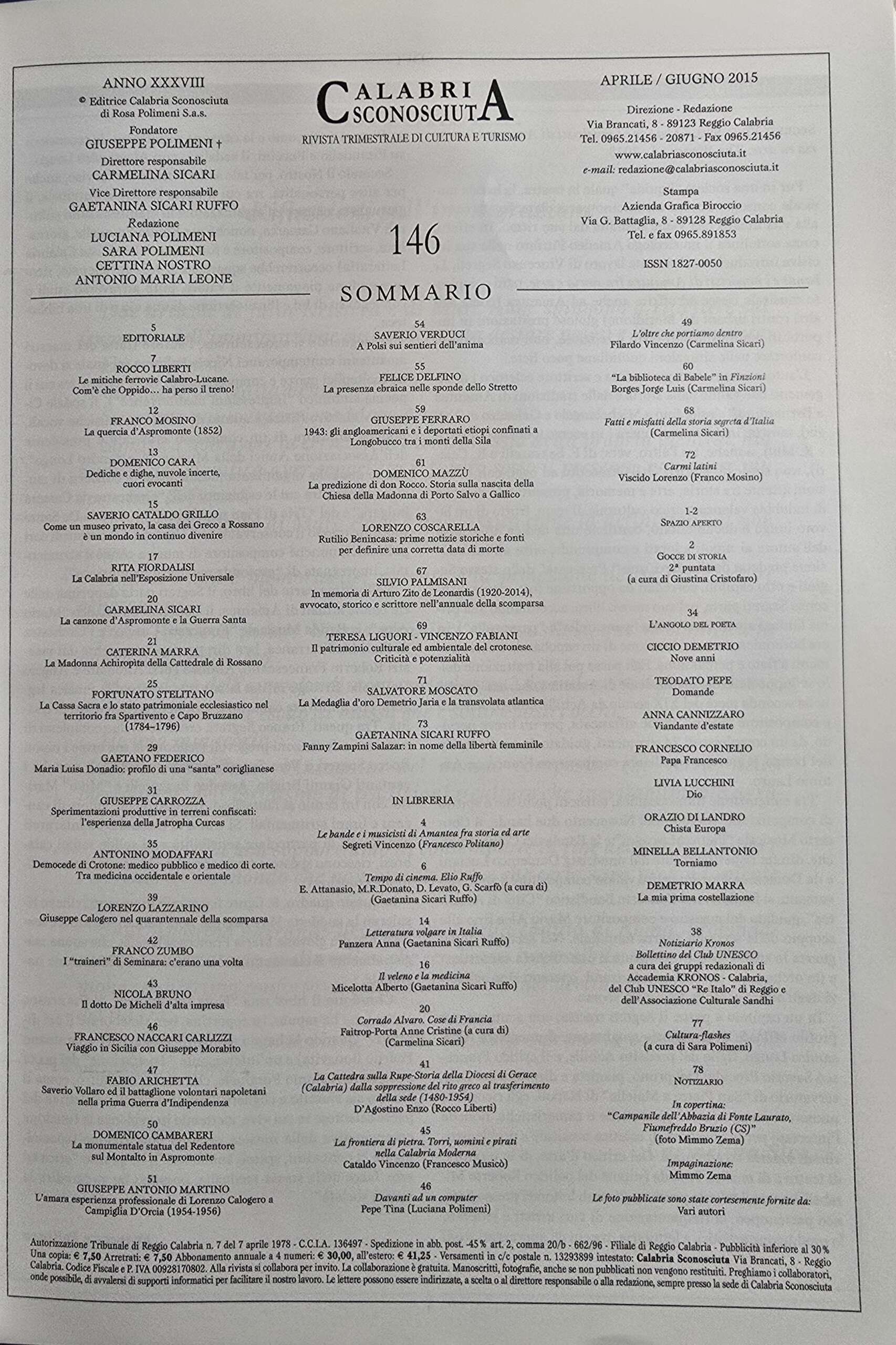 Da allora Calabria Sconosciuta, che intanto dopo Chiaravalle e Vibo Valentia, trova una nuova veste tipografica presso Reggio per motivi pratici di avvicinamento alla sede, continua a raccogliere e pubblicare studi, notizie, documenti sui luoghi, cultura e tradizioni della Calabria. Si avvale anche della collaborazione di giovani promesse nel mondo della cultura.