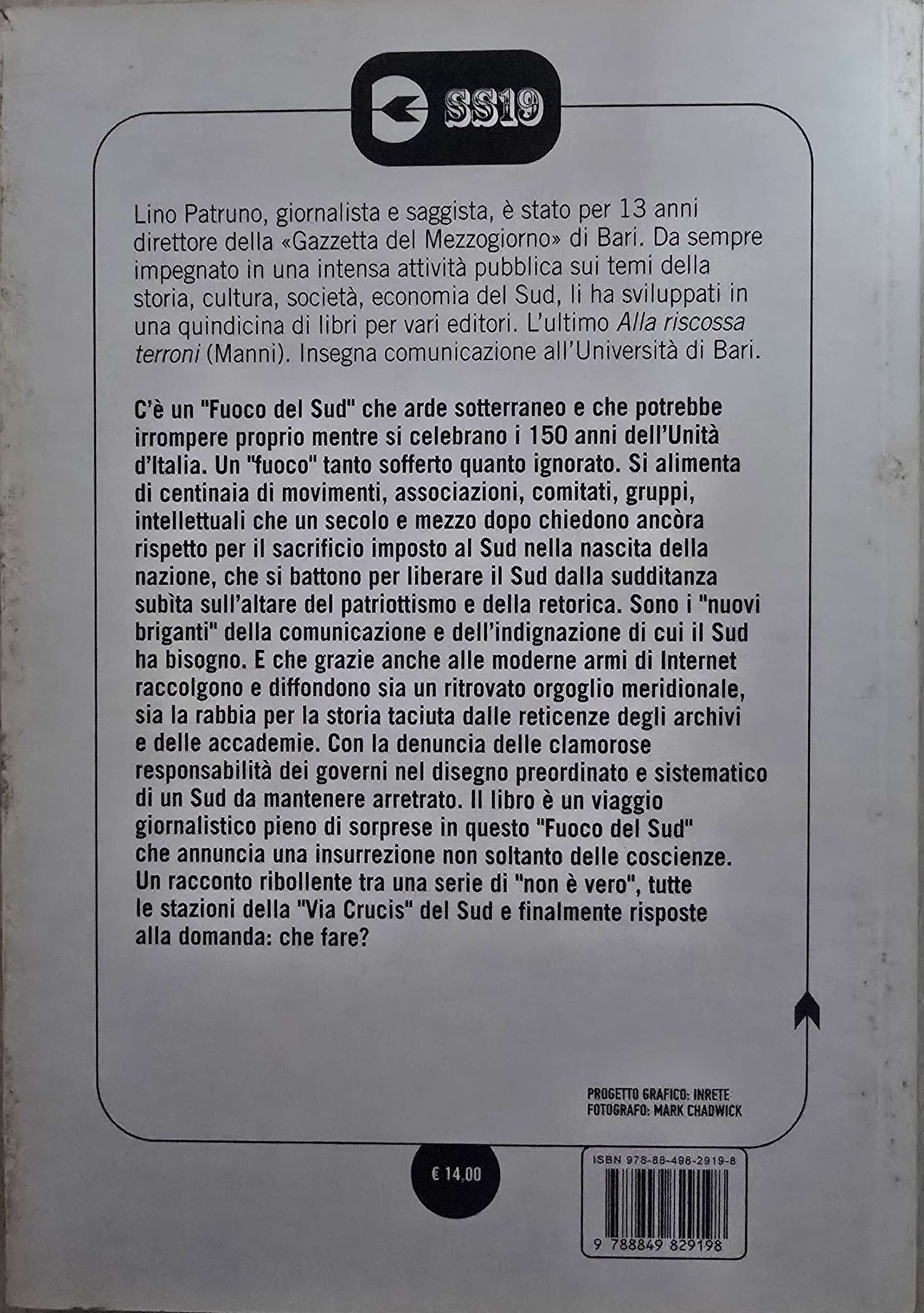 I “fuochisti” che vorrebbero portare il Sud alla riscossa continuano ad aumentare in numero quasi esponenziale. Testimonianza ne sono libri, giornali, convegni, ma soprattutto siti internet che si fanno portavoce di movimenti e associazioni che fanno del meridionalismo il loro campo di ricerca e di azione. Lino Patruno nel suo libro ha selezionato alcuni autori significativi, che fanno parte di questa “ribollente galassia”, e li ha seguiti lungo vari percorsi di storia, di protesta, di proposta. Sono i “nuovi briganti” del Sud, non più armati di fucili ma di megafoni digitali che diffondono la conoscenza, stimolano le coscienze, suscitano la reazione.