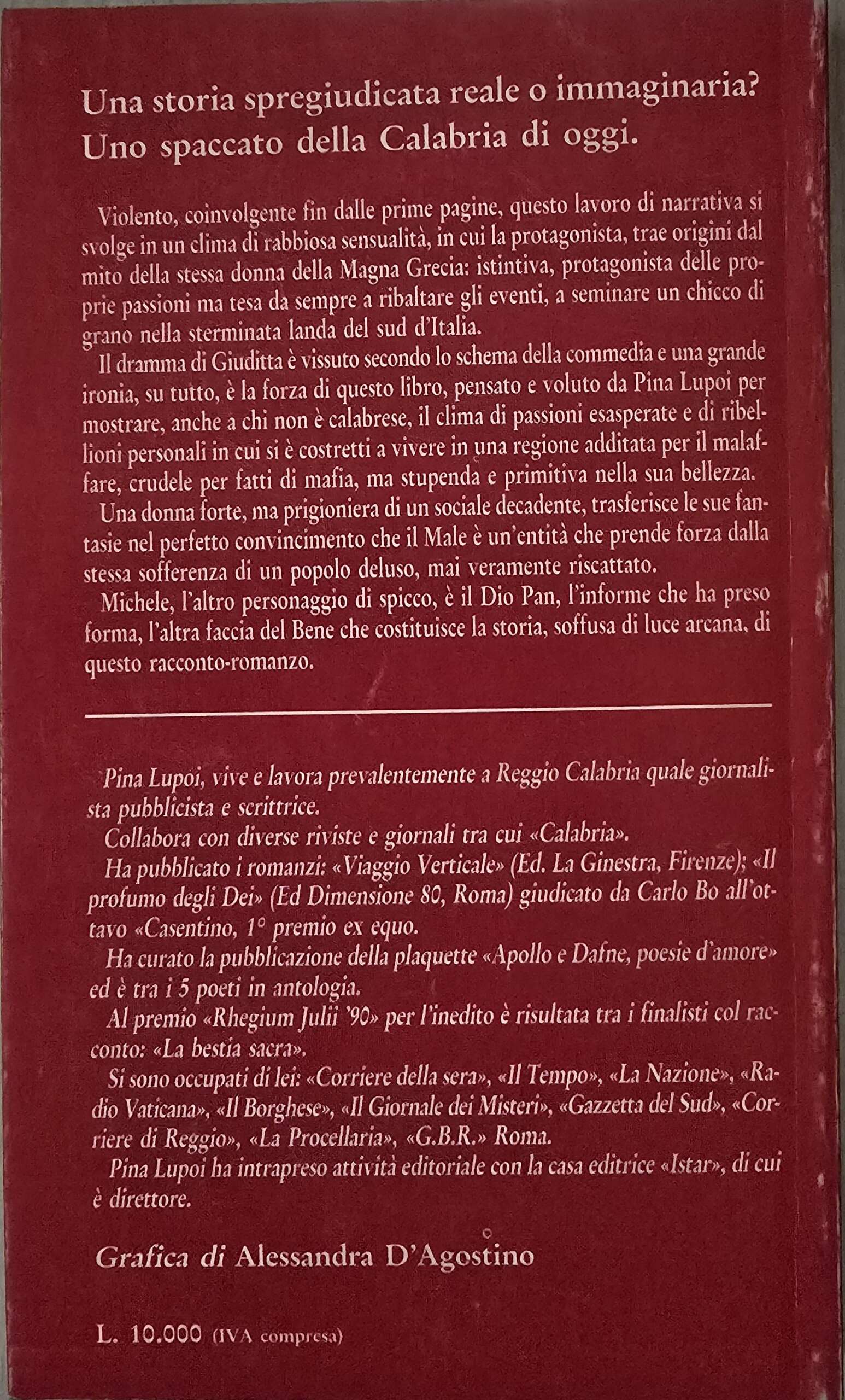 Violento,conivolgente fin dalle prime pagine,questo lavoro di narrativa si svolge in un clima di rabbiosasensualità, in cui la protagonista, trae origine dal mito della stessa magna grecia: istintiva,protagonista delle proprie passioni, ma tesa da sempre a ribaltare gli eventi, a seminare un chicco di grano nella sterminata landa del Sud italia