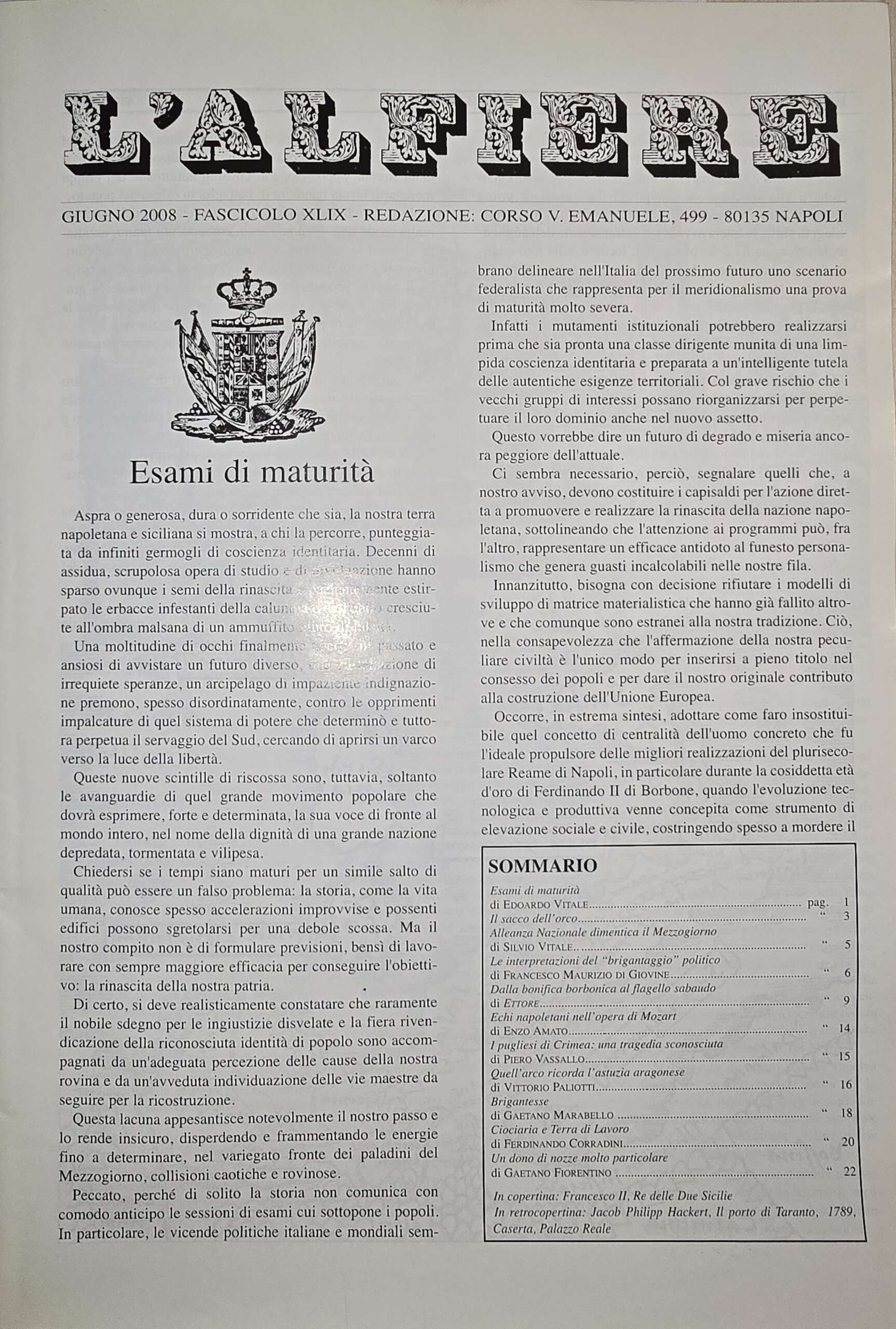 L’Alfiere è la storica pubblicazione napoletana tradizionalista fondata nel 1960 dall’avvocato Silvio Vitale.