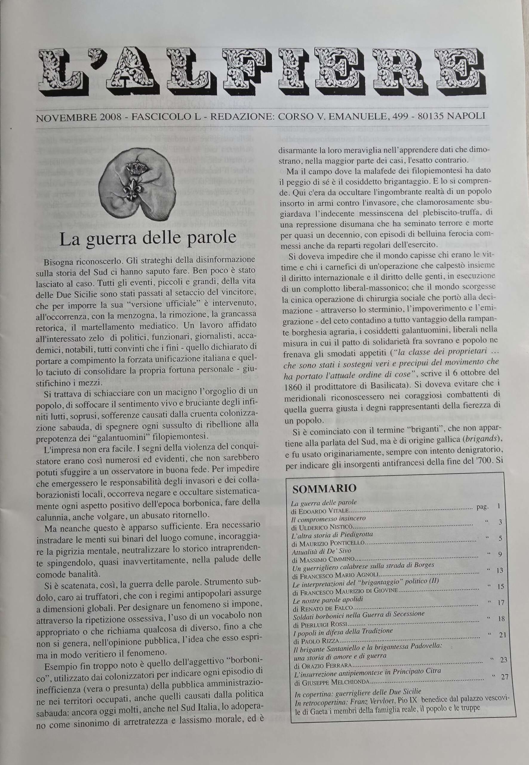 Autorevole punto di riferimento per il mondo tradizionalista meridionale e non, la rivista per prima intraprese la difficile strada del recupero delle fonti storiche per una rilettura critica della vicenda risorgimentale, in netto contrasto con la retorica storiografica rinnovata dal centenario dell’unificazione d’Italia, allora appena celebrato.
