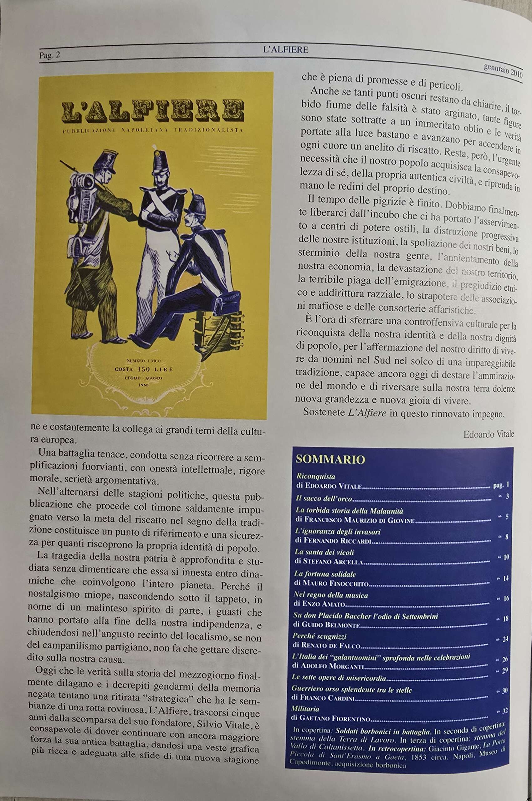 L’Alfiere è la storica pubblicazione napoletana tradizionalista fondata nel 1960 dall’avvocato Silvio Vitale.
