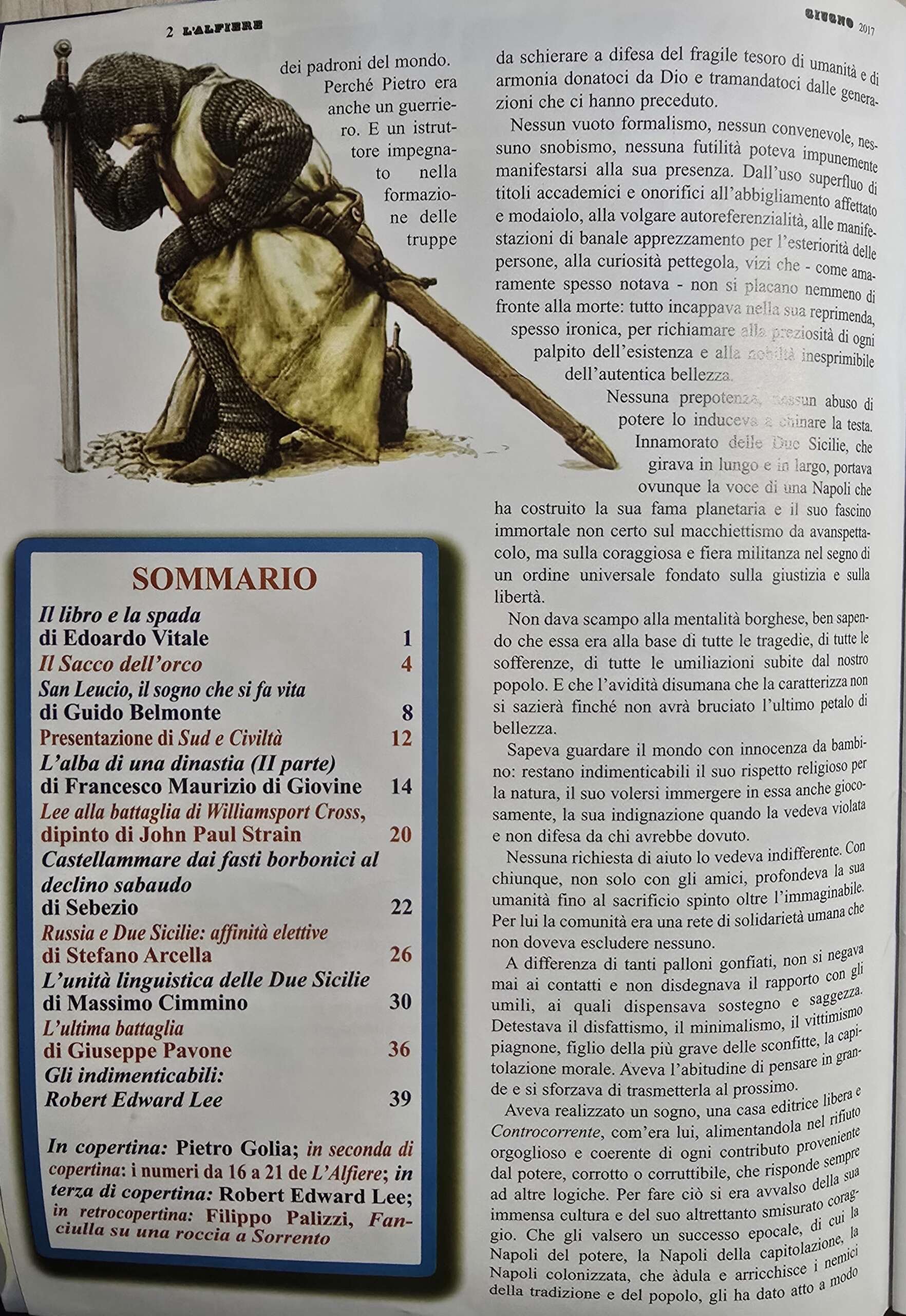 L’Alfiere è la storica pubblicazione napoletana tradizionalista fondata nel 1960 dall’avvocato Silvio Vitale.
