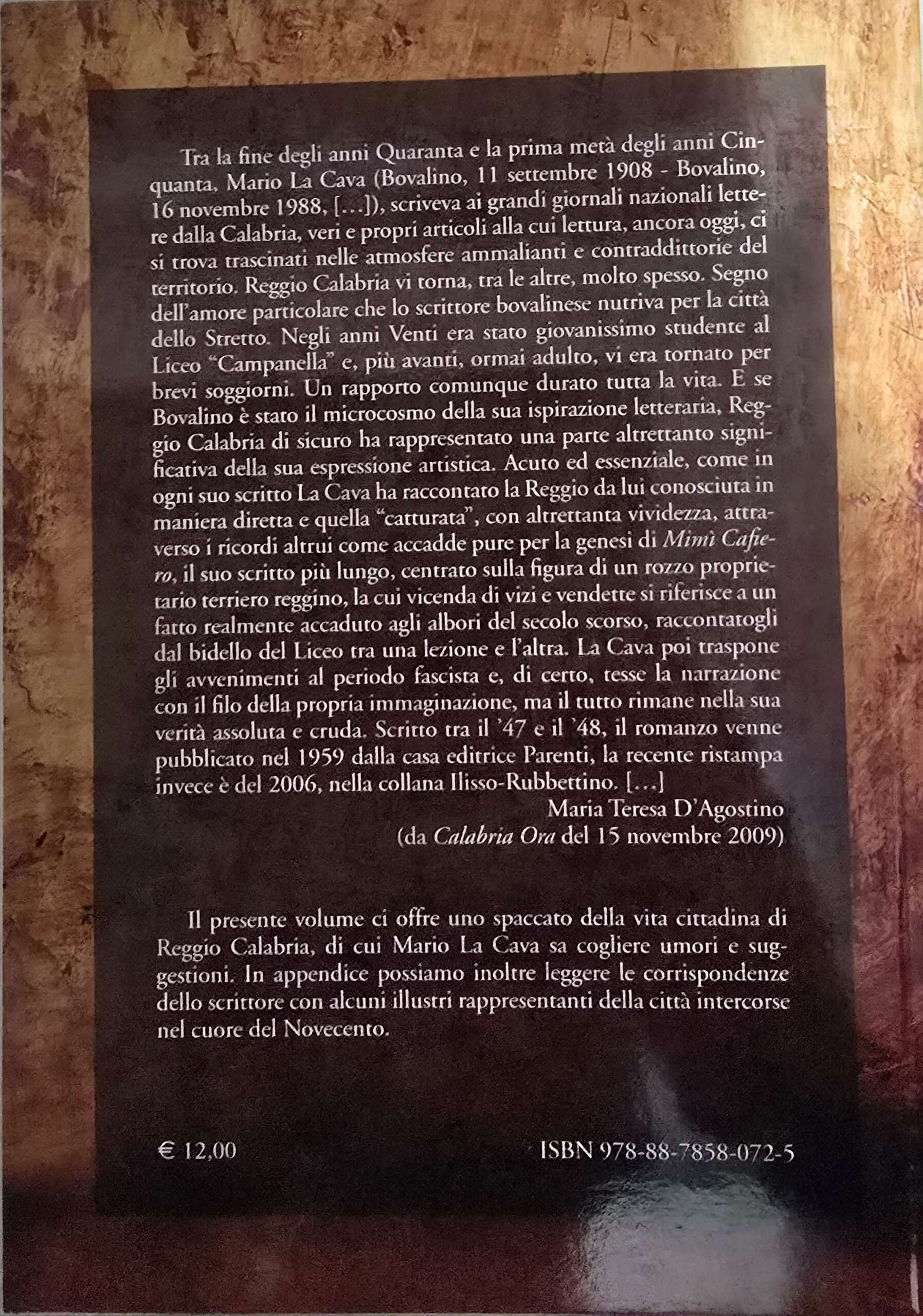 Nella sua apparente semplicità, rimane uno dei testi più sinceri e significativi della letteratura civile calabrese del Novecento.
