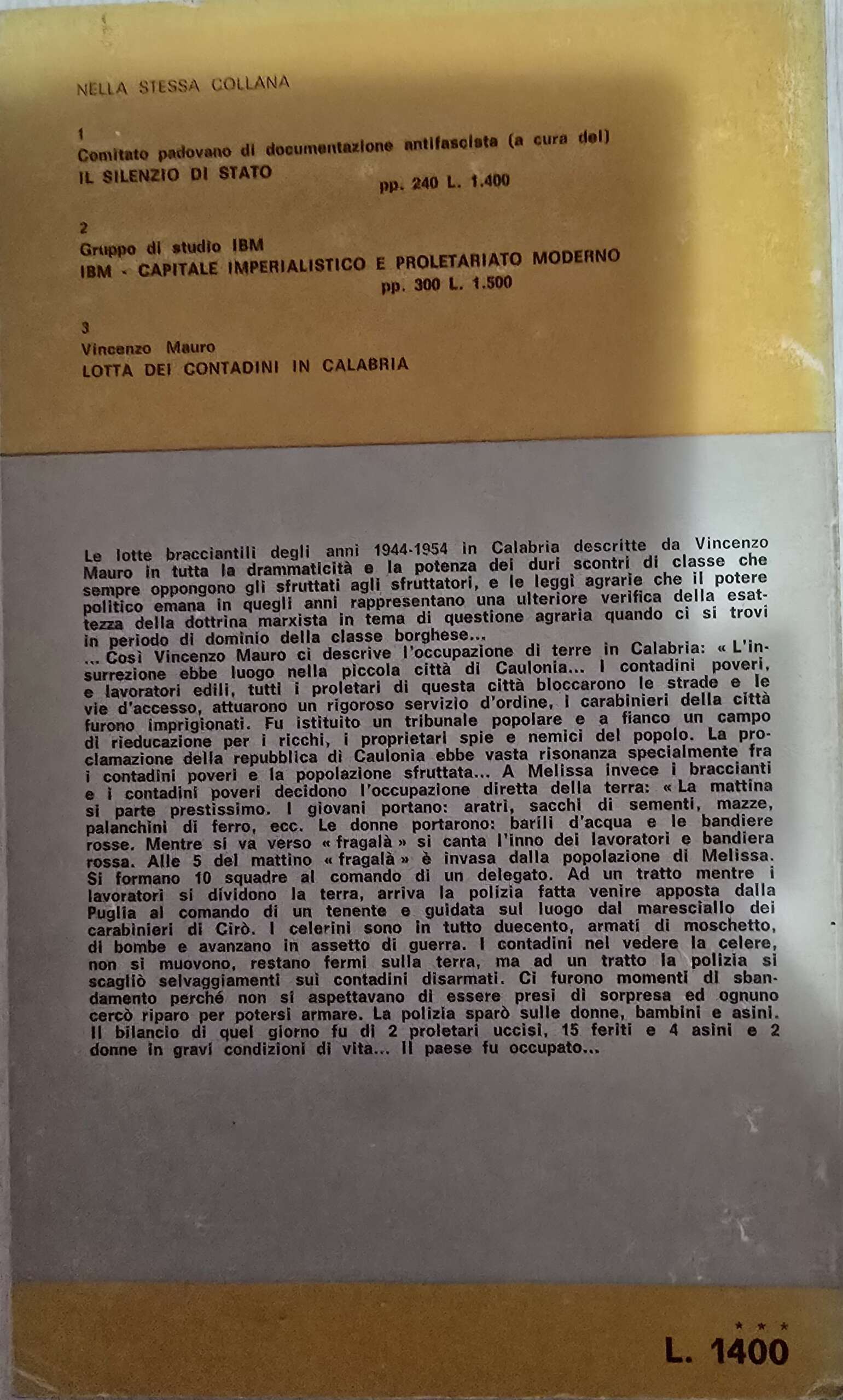 Il testo affronta le mobilitazioni contadine in Calabria nel secondo dopoguerra — in particolare dal 1944 al 1954 — attraverso testimonianze, documenti, casi locali e riflessioni sul movimento dei braccianti e dei contadini. L’opera risulta essere più di una ricostruzione puramente quantitativa: contiene interviste, testimonianze dirette, clausole contrattuali, e mira a lasciare emergere la voce dei protagonisti — braccianti e contadini — inserendoli nel contesto dei grandi cambiamenti agrari nel Mezzogiorno d’Italia. In particolare, Mauro mette in evidenza come la “lotta per la terra” nel Meridione — e più ancora in Calabria — non fosse solo rivendicazione economica, ma assunzione di soggettività politica e sociale, una sfida al latifondo, al clientelismo, al controllo delle classi dominanti.
