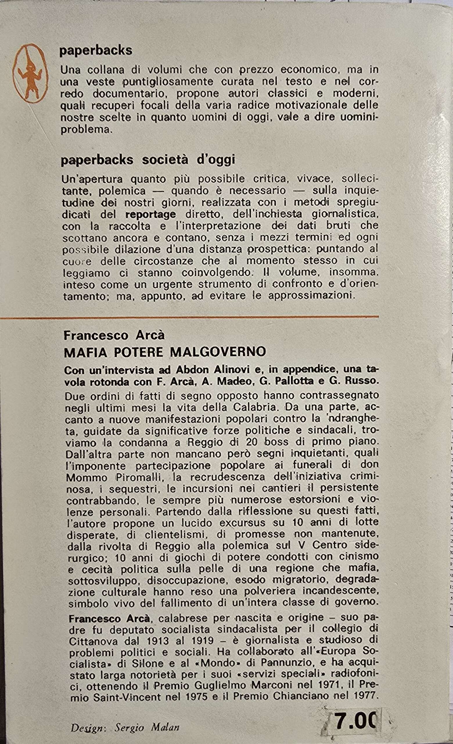 Inchiesta sui fatti che hanno contrassegnato la vita della calabria negli anni ’70.Da una parte, accanto a nuove manifestazioni popolari contro la ‘ndrangheta, guidate da significative forze politiche e sindacali, troviamo la condanna a reggio di 20 boss di primo piano. Dall’altro l’imponente partecipazione al funerale dl boss Piromalli. Partendo dalla riflessione su questi fatti, l’autore propone un lucido excursus su 10 anni di lotte