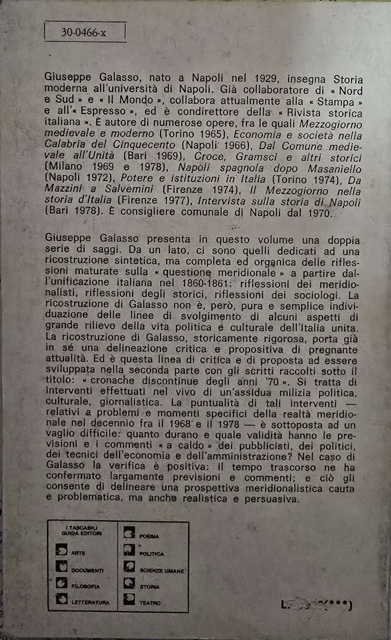 Nel primo volume , ci sono gli scritti dedicati ad una ricostruzione sintetica, ma completa e organica delle riflessioni maturate sulla questione meridionale a partire dall’unificazione italiana nel 1860-61: riflessioni dei meridionalisti, riflessioni degli storici, riflessioni dei sociologi.
