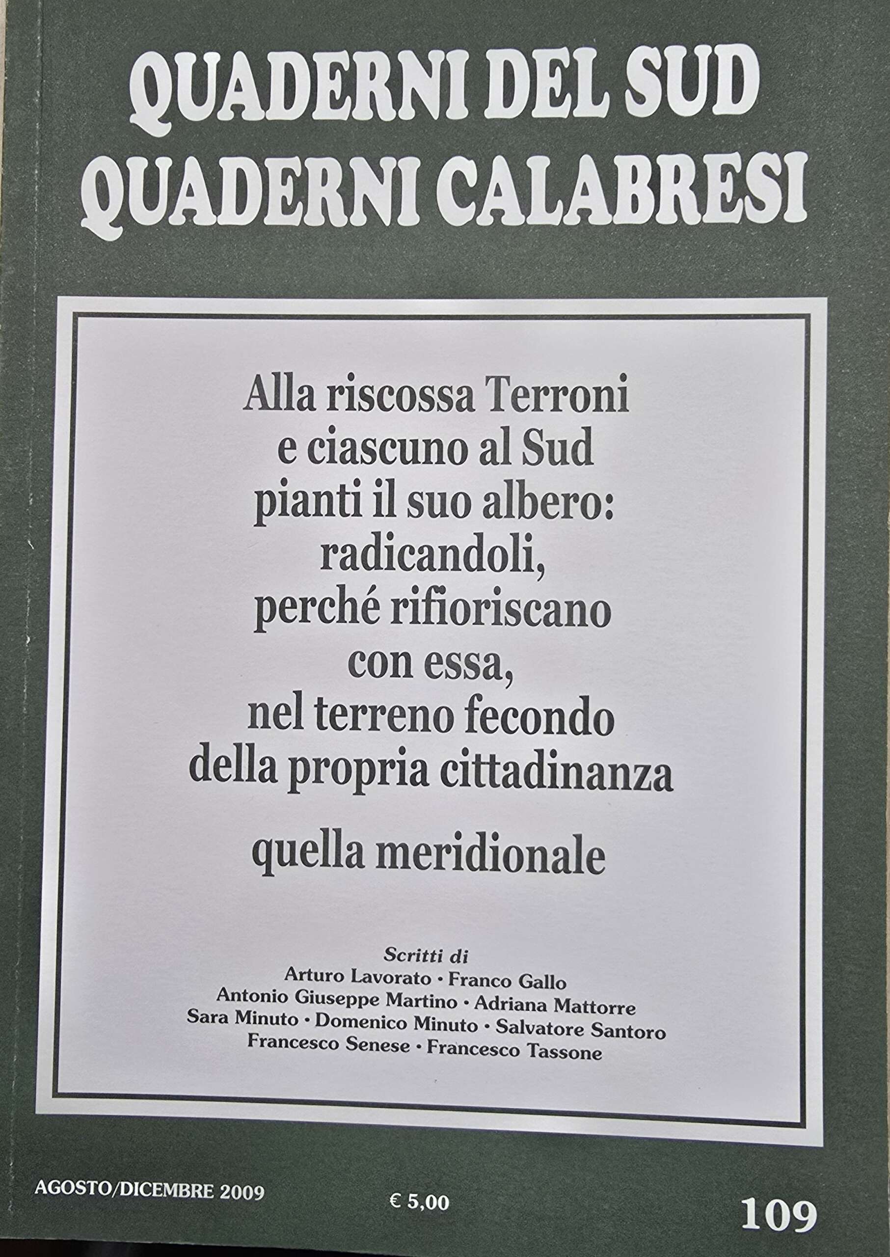 I Quaderni del Sud e i Quaderni Calabresi furono due riviste fondate dall’avvocato e intellettuale Giuseppe Tassone, con il contributo di Nicola Zitara e altri studiosi e attivisti meridionalisti. Queste pubblicazioni nacquero nel contesto del dibattito sul Mezzogiorno d’Italia negli anni ‘ 60 ’70 e ’80 del Novecento, con l’obiettivo di analizzare e denunciare le conseguenze del processo di unificazione italiana sul Sud, sostenendo la tesi che l’Italia fosse diventata una colonia economica del Nord.