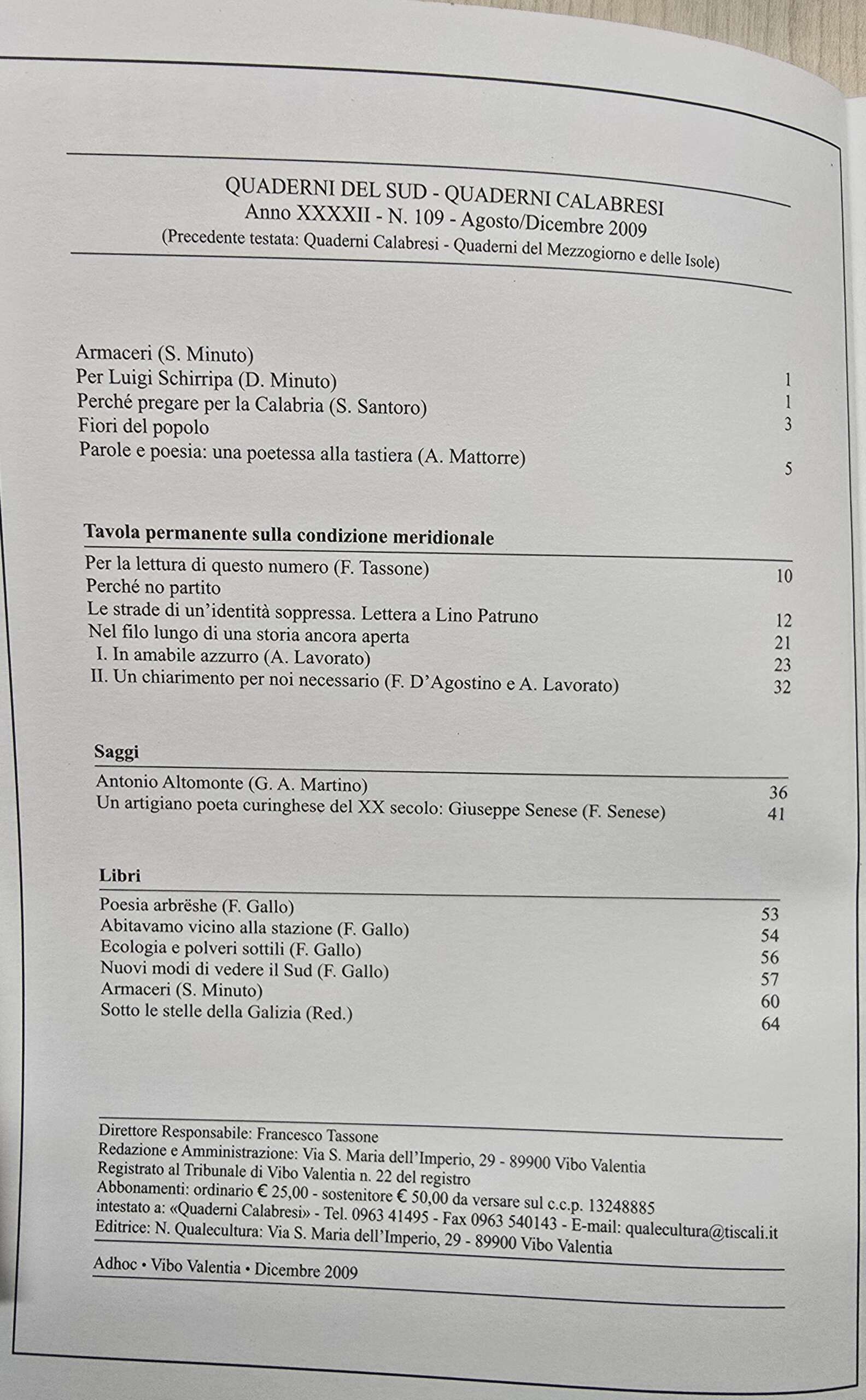 Fondata nel 1968, questa rivista si concentrava sulle questioni economiche, sociali e politiche del Meridione, analizzandole con un approccio critico e marxista. Tassone e i suoi collaboratori sostenevano che il Sud fosse stato integrato nell’Italia unita in una posizione subalterna, con un’economia dipendente dalle decisioni del Nord industrializzato. Tra i temi trattati c’erano: