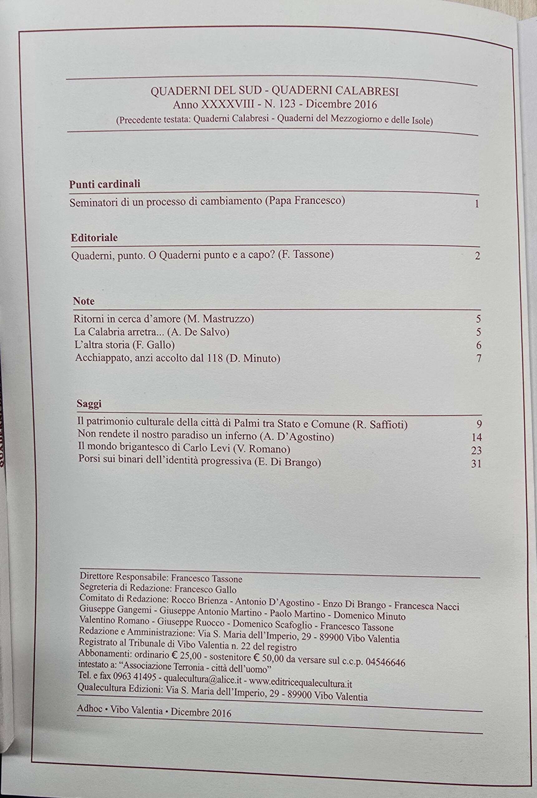 Fondata nel 1968, questa rivista si concentrava sulle questioni economiche, sociali e politiche del Meridione, analizzandole con un approccio critico e marxista. Tassone e i suoi collaboratori sostenevano che il Sud fosse stato integrato nell’Italia unita in una posizione subalterna, con un’economia dipendente dalle decisioni del Nord industrializzato. Tra i temi trattati c’erano: