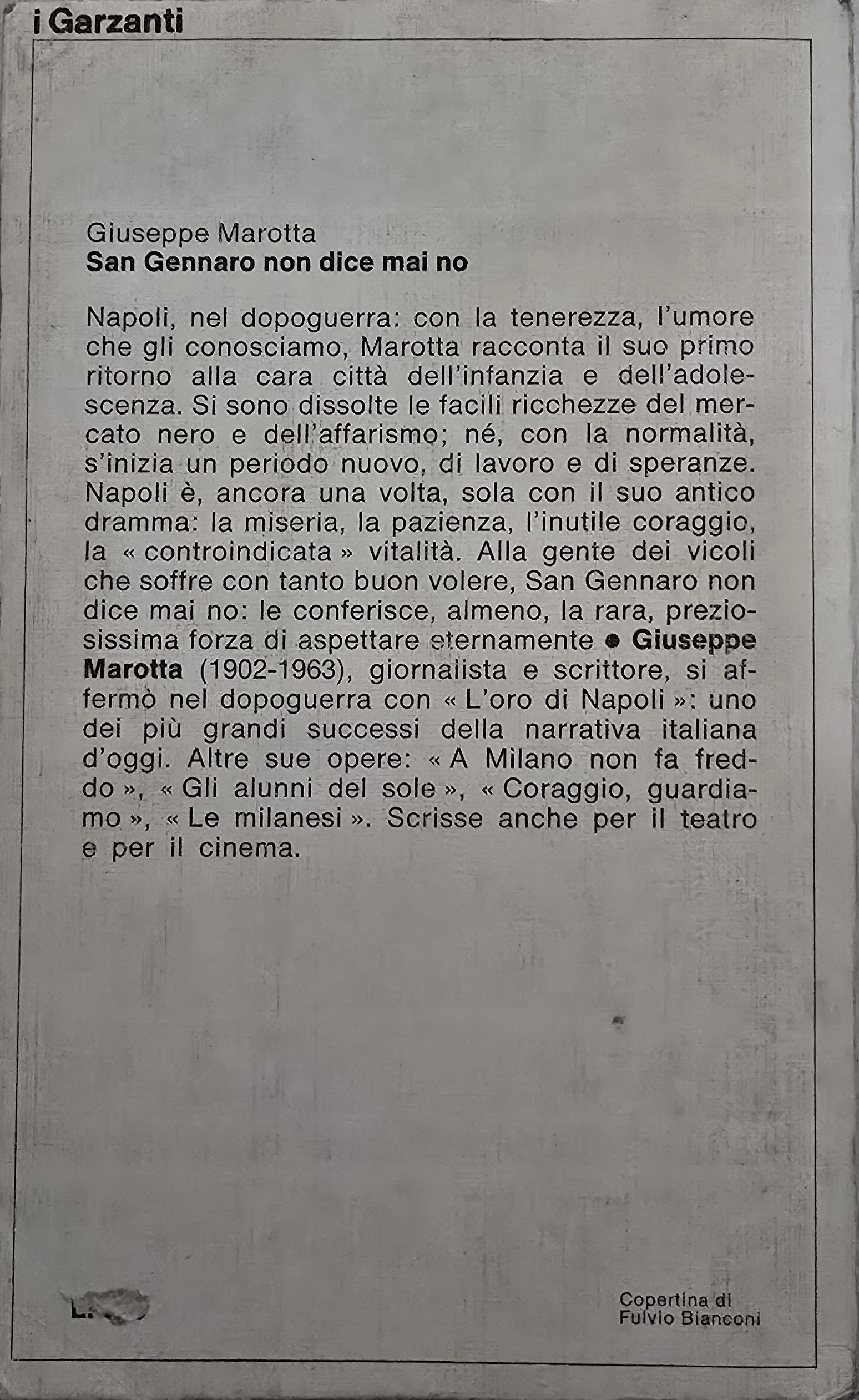 San Gennaro non dice mai no è una raccolta di racconti di Giuseppe Marotta pubblicata nel 1948. I racconti sono stati scritti dall’autore nel 1947, in occasione di un viaggio di ritorno nella sua città natale, Napoli, dopo vent’anni di assenza. Il libro ebbe subito un discreto successo: pubblicato da Longanesi, esaurì la prima edizione dopo un solo mese. Per “farsi perdonare dal santo” per il titolo irriverente, dopo la pubblicazione, Marotta spedì a una zia del Vomero mille lire affinché comprasse un cuore in argento da regalare a san Gennaro.