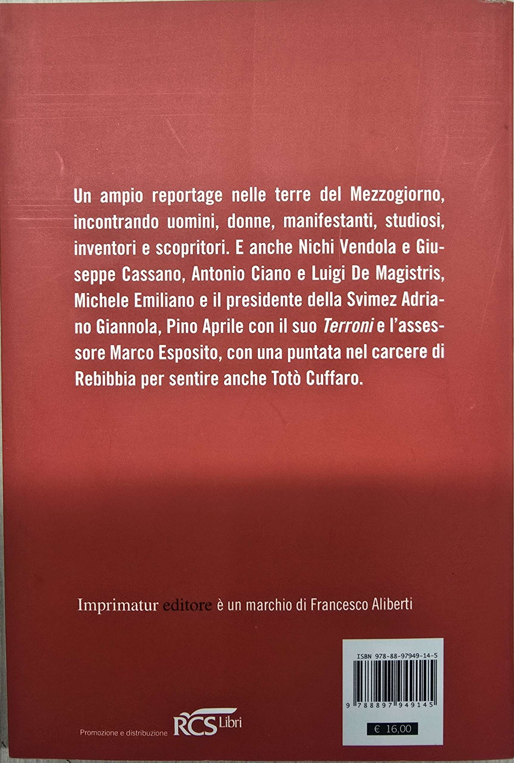 Profondo, sconcertante, eccitante Sud», spiega il libro-reportage che arriva ora in libreria. Con un viaggio tra le donne coraggio che fanno il sindaco sotto scorta in Calabria e le ragazze di Fimmina Tv nella Locride. Tra gli autonomisti che sognano la separazione dal Nord, ma anche con il sindaco «Mimmo il curdo» che a Riace accoglie gli immigrati venuti dal mare. E poi i «forconi» che vogliono giustizia per le campagne siciliane contro i pomodori di Pechino. Il Calabria Day, il movimento per l’acqua in Sicilia, l’invenzione della festa della Taranta nel Salento, i supermercati di CompraSud nel catanese e il sogno di prodotti Dom, il lancio del caciocavallo Pallone nelle Murge e i neolaureati glocal, i «bollenti spiriti» di Puglia, le palme salvate a Valenzano dal punteruolo rosso (ma quasi nessuno lo sa), le banconote Napo a Napoli e la scoperta che nella città partenopea non era mai stato fatto un piano di Protezione Civile.